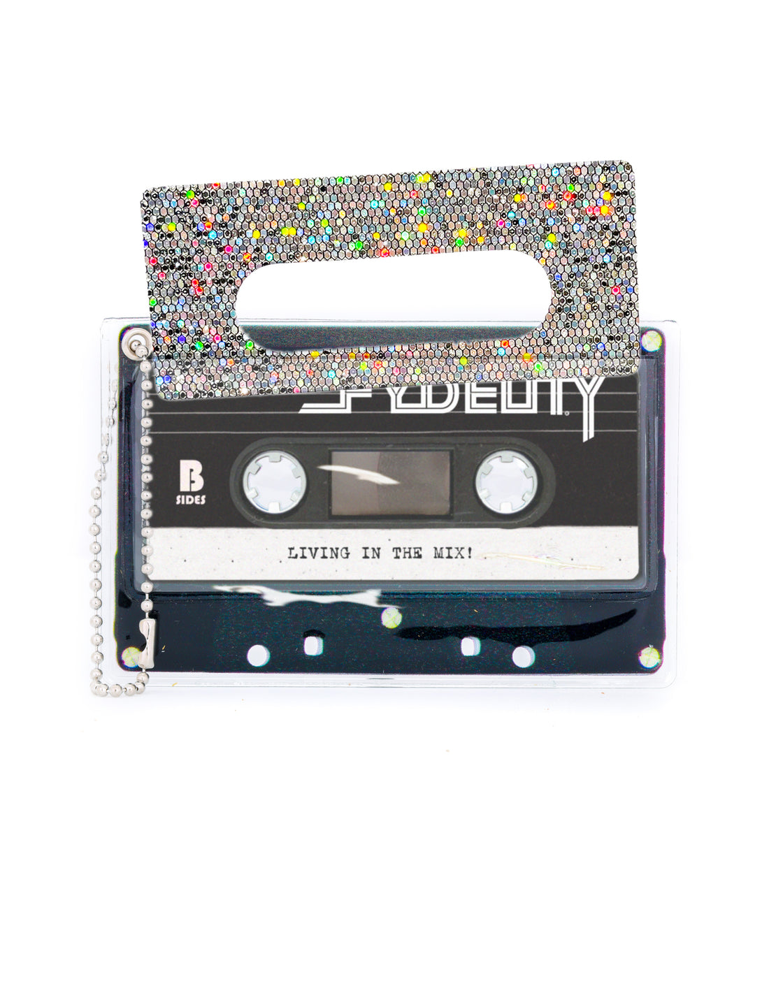 Retro Cassette Tape | Deco Sticker Tag | GLAM Rainbow Silver Glitter