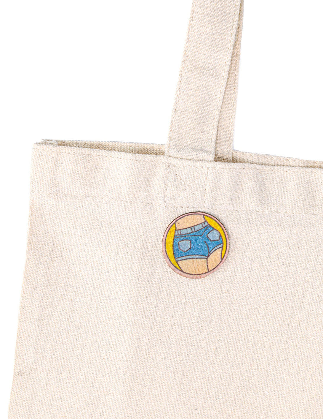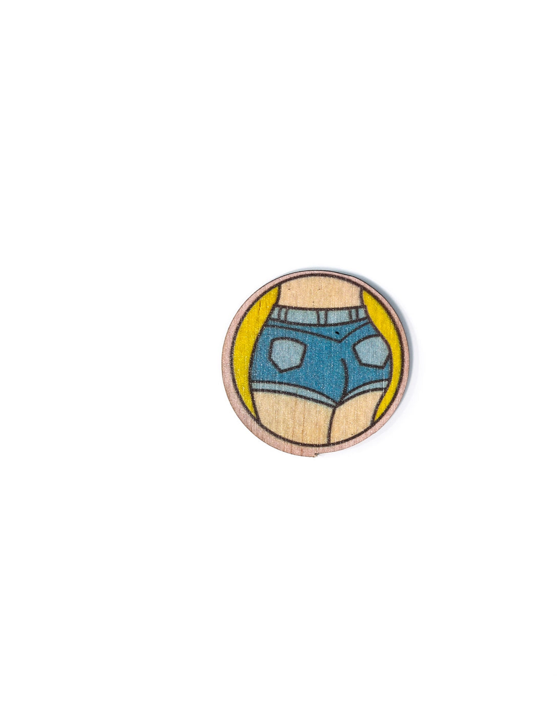 Printed Wood Pin with butterfly backing. Sustainably Made in Brooklyn NYC with 100% Sustainable Wood Grown in the USA. Unique Push-2-Popª Design creates a beautiful zero-packing product.
