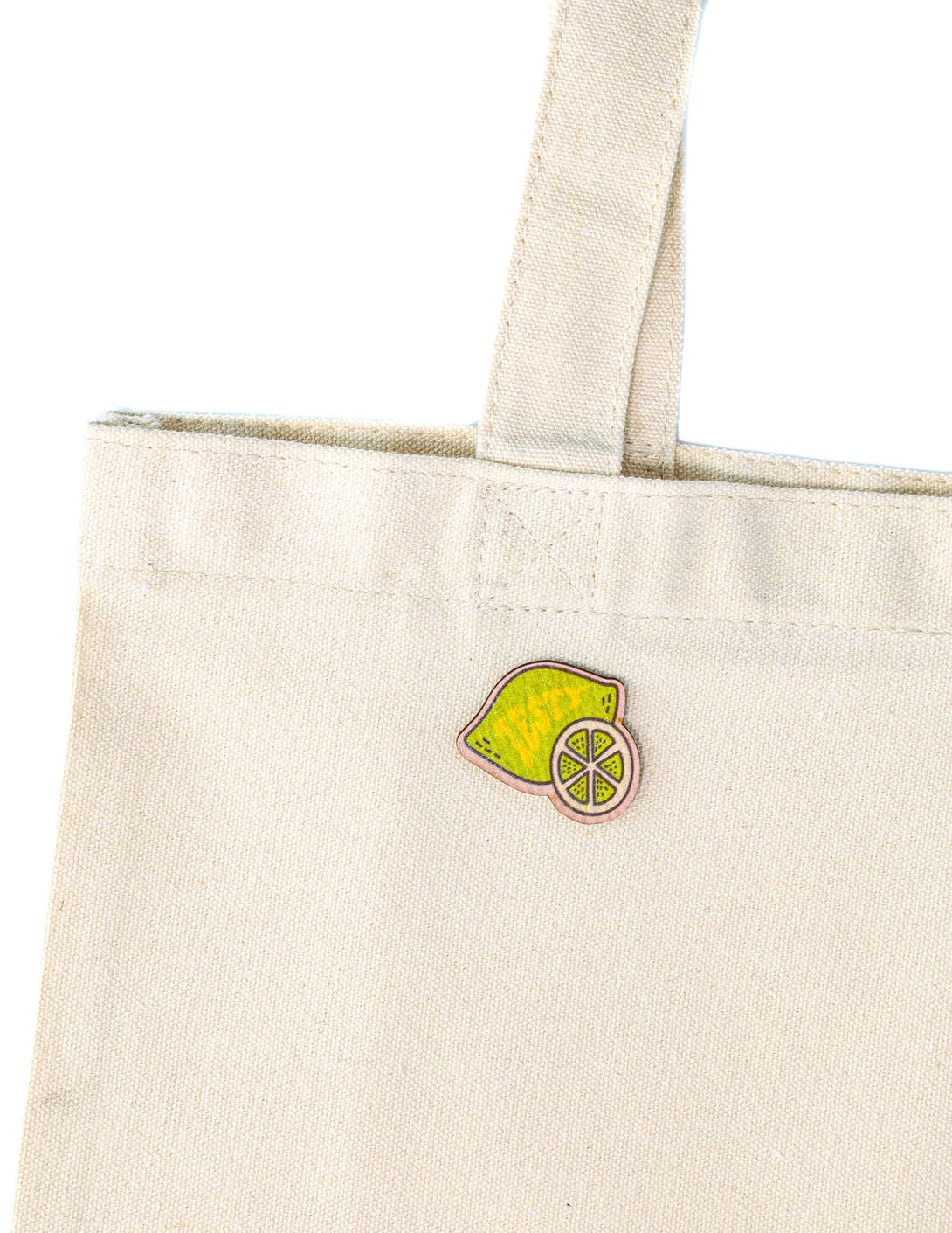 Printed Wood Pin with butterfly backing. Sustainably Made in Brooklyn NYC with 100% Sustainable Wood Grown in the USA. Unique Push-2-Popª Design creates a beautiful zero-packing product.