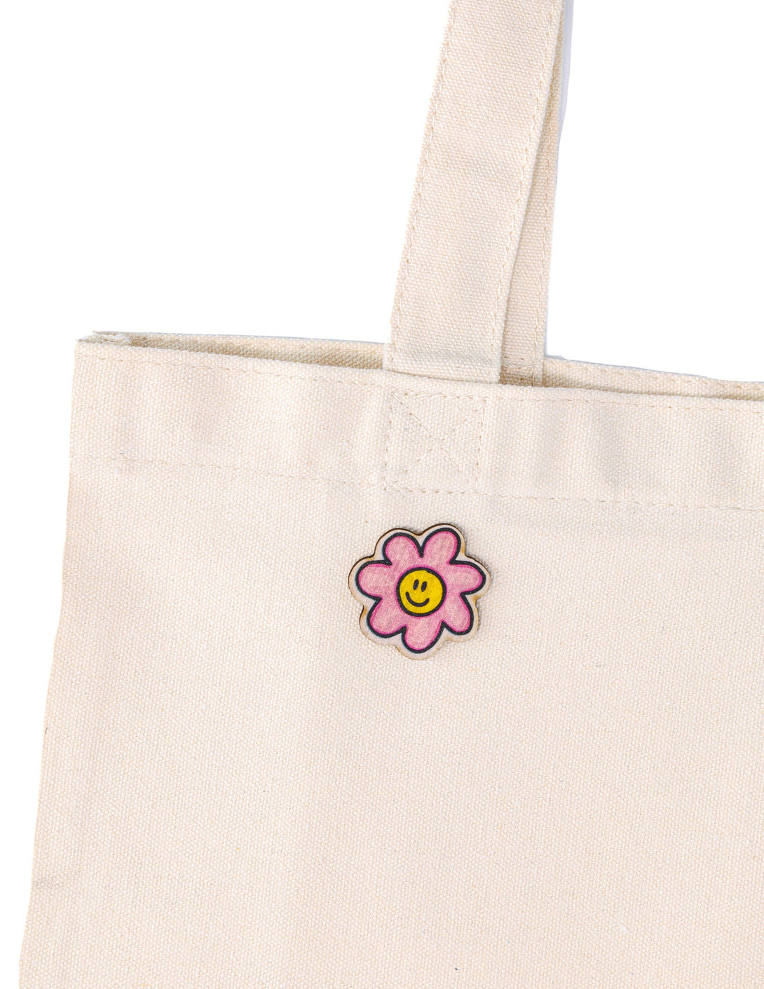 Printed Wood Pin with butterfly backing. Sustainably Made in Brooklyn NYC with 100% Sustainable Wood Grown in the USA. Unique Push-2-Popª Design creates a beautiful zero-packing product.
