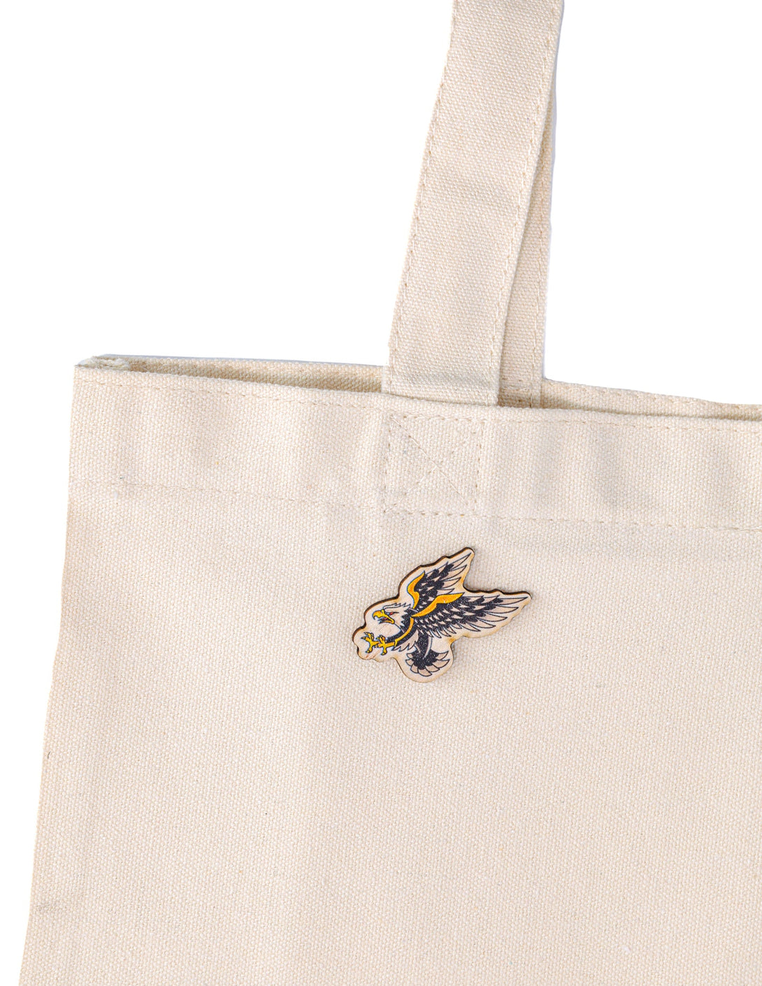 Printed Wood Pin with butterfly backing. Sustainably Made in Brooklyn NYC with 100% Sustainable Wood Grown in the USA. Unique Push-2-Popª Design creates a beautiful zero-packing product.