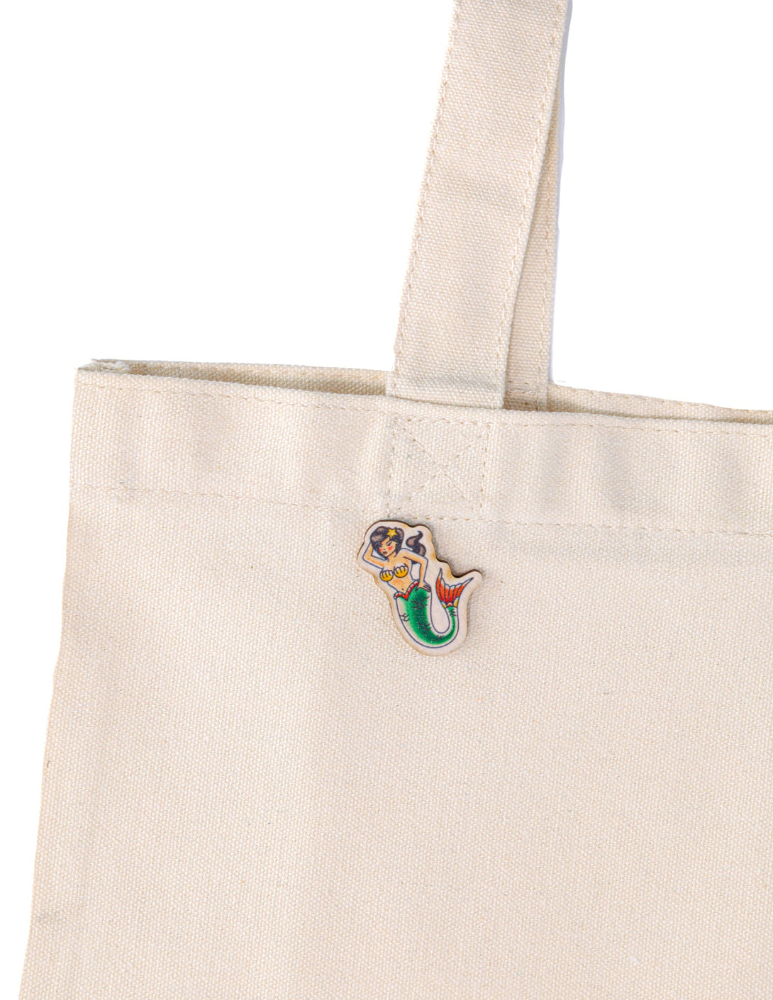 Printed Wood Pin with butterfly backing. Sustainably Made in Brooklyn NYC with 100% Sustainable Wood Grown in the USA. Unique Push-2-Popª Design creates a beautiful zero-packing product.