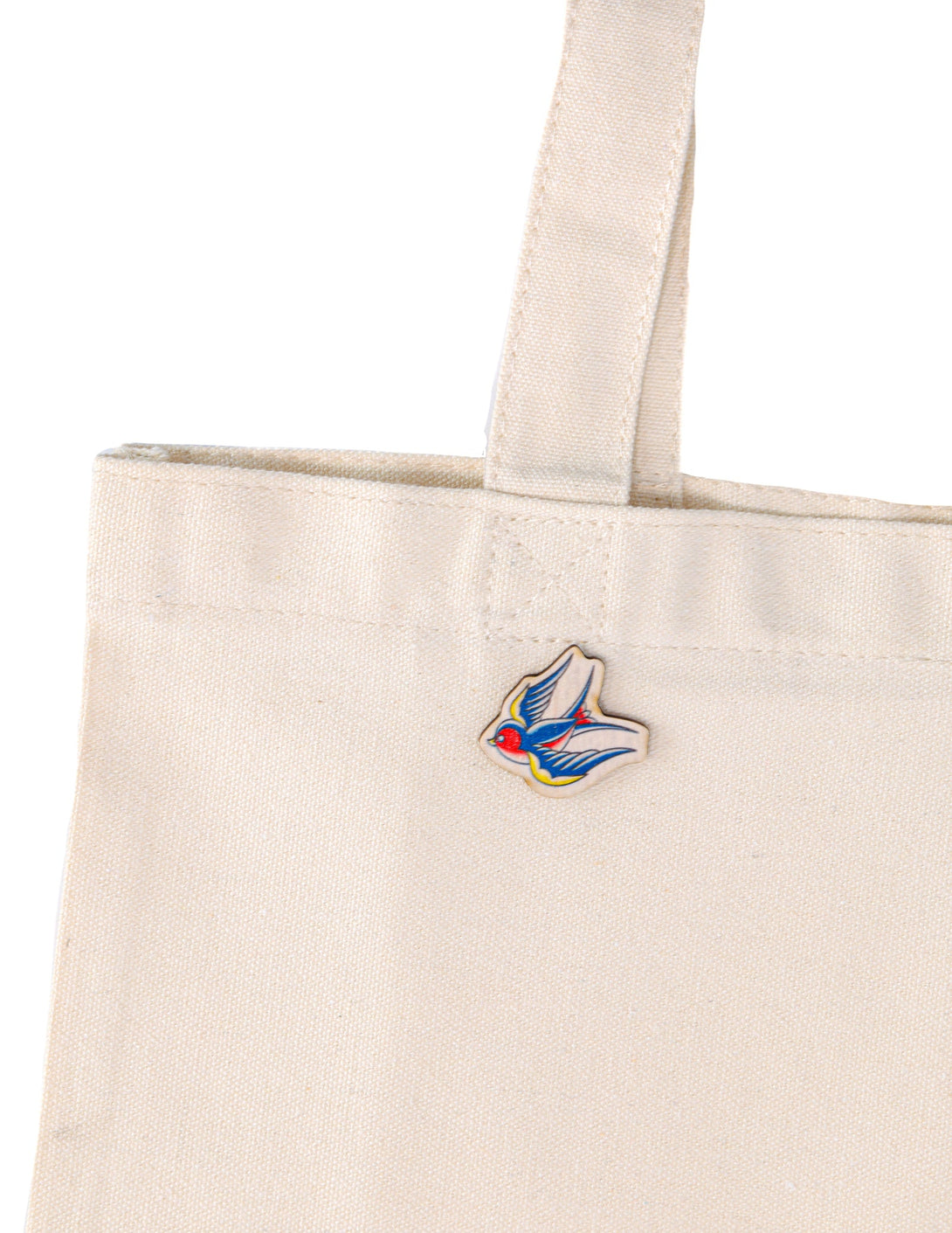 Printed Wood Pin with butterfly backing. Sustainably Made in Brooklyn NYC with 100% Sustainable Wood Grown in the USA. Unique Push-2-Popª Design creates a beautiful zero-packing product.