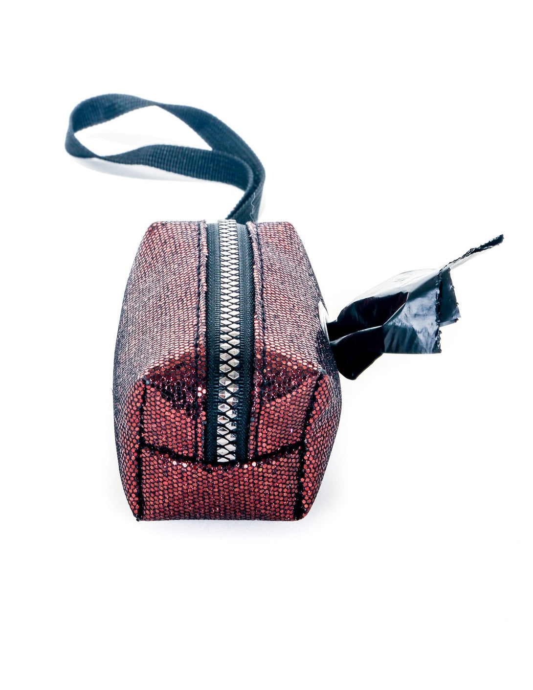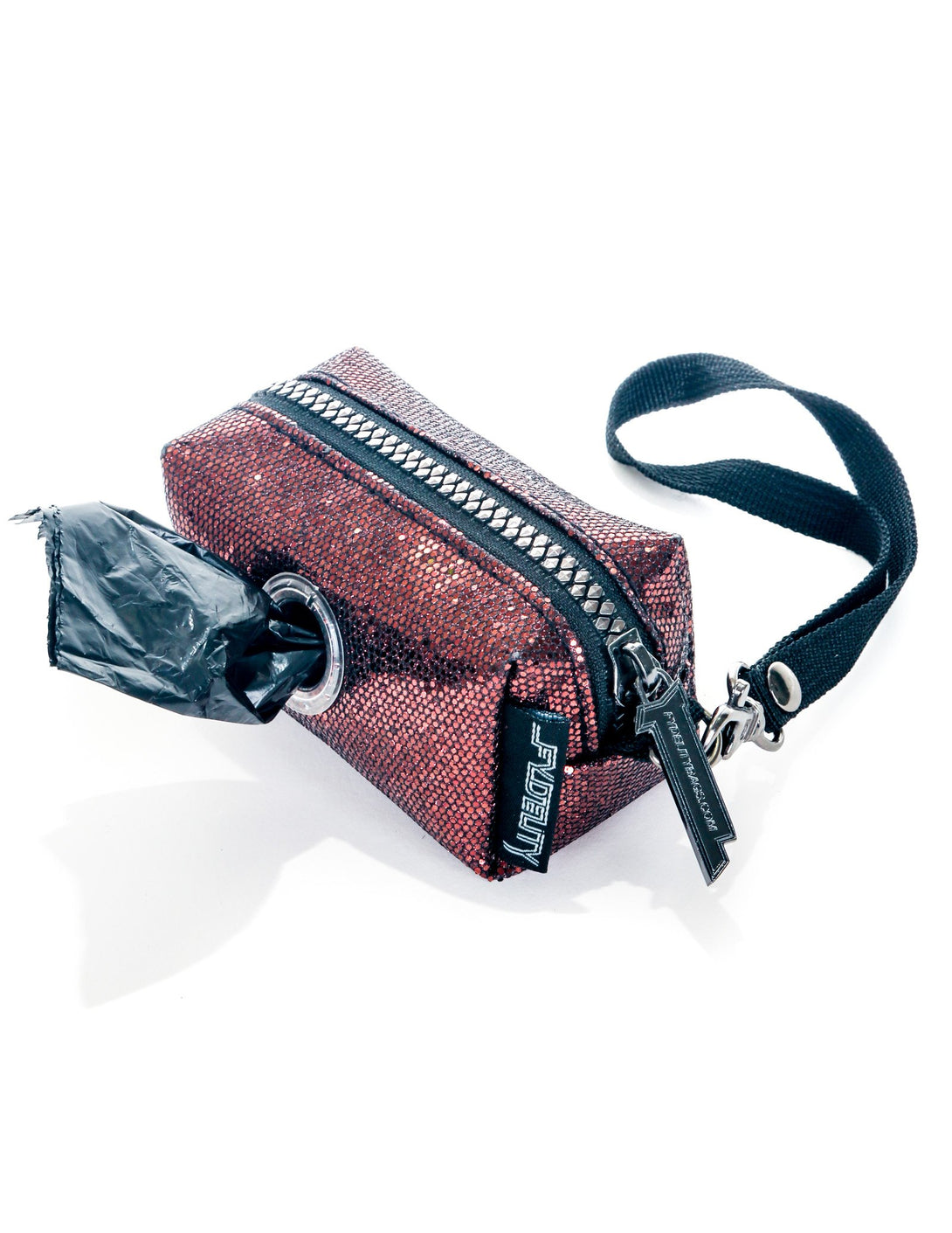 CREATURE COMFORTS poopyCUTE Bag's small compact size let you conveniently carry the essential creature comforts inside. They'll hold the just right amount of stuff, including standard roll of disposable poo bags, scented or unscented, c Redit cards / ID, cash /coins, subway cards / tokens, lip balm/ lip stick, keys and of course the doggie treats!!! :)