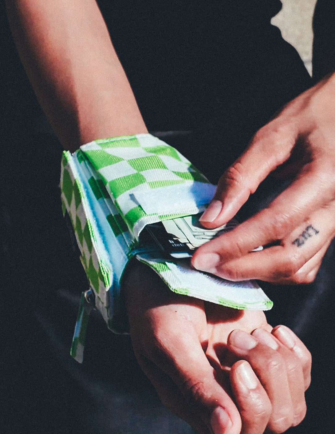 Crafted from eco-funky recycled rPET, these wrist wallets are stylish and seriously functional. The Stash Wrap Wrist Wallet keeps your stash safe no matter what chaos you throw at it. 🤕