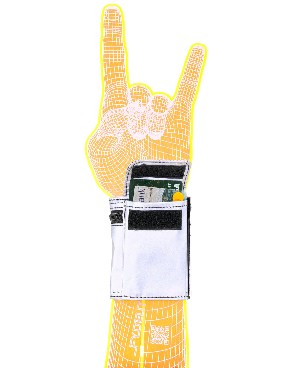 Crafted from highly reflective vegan leather in silver or rainbow, these wrist wallets are stylish, functional, and perfect for being seen. The Stash Wrap Wrist Wallet keeps your stash safe no matter what chaos you throw at it. 🤕