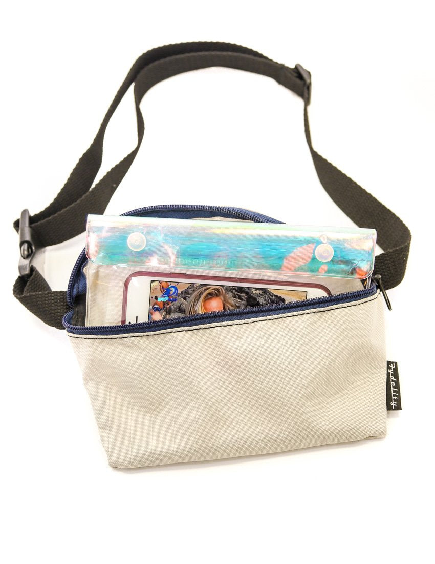 FYDELITY- WET/DRY: Stash-It Fanny Pack Insert Case | Clear, Transparent, Iridescent, Theme Park, Beach, Pool, Boating, Swim, Spring Break, Festival, Protective, Resistant