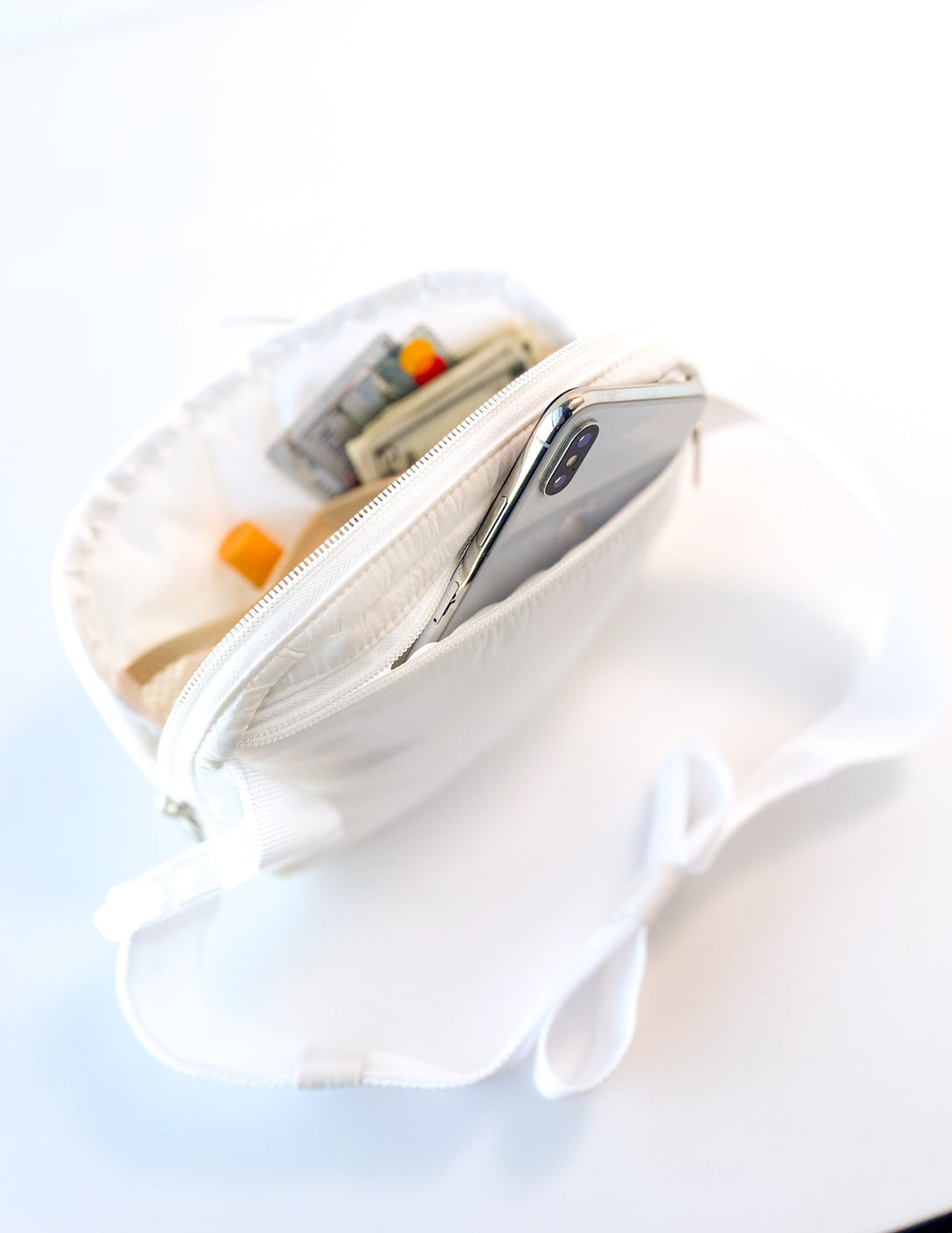 The Lemonade Crossbody Fanny Pack isn’t just a bag; it’s a vibe. Its puffy construction and iridescent sheen (in shades of metallic silver, cosmic white, and starry black) are pure space couture. It’s lightweight yet durable, ready to orbit your everyday adventures in style.