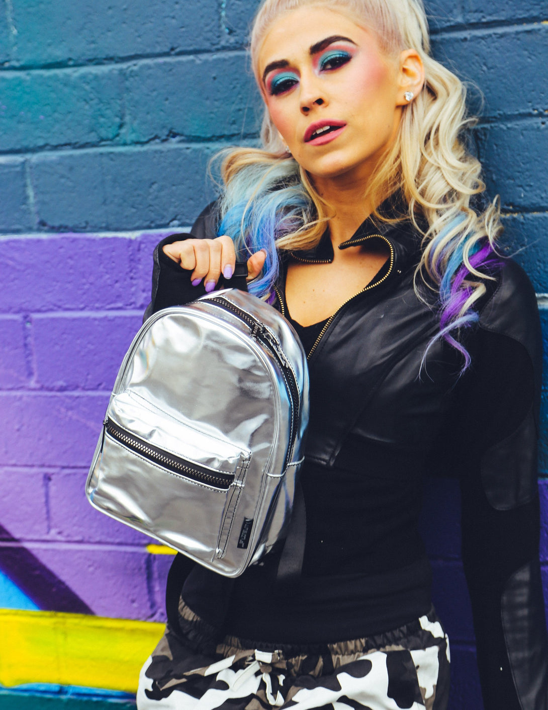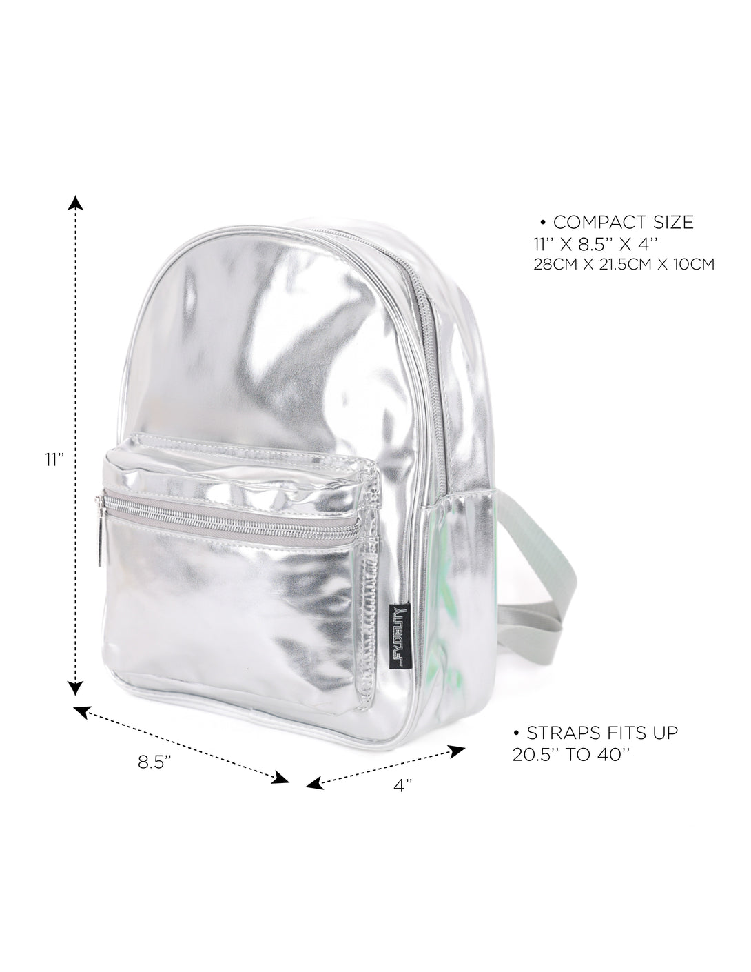 FASHION FRESH- Our fashion forward designs will accessorize any outfit. Choose from a range of funky 80' s / checkerboard / funky prints, metallic foils, holographic iridescent fabrics or stadium friendly clear designs. Fydelity's Mini Hipster Fashionista Backpack sleek lines won' t distract from your style and they can be discreetly worn day or night. Designed in Brooklyn, CA Fydelity, The Party' s in the Bag!
