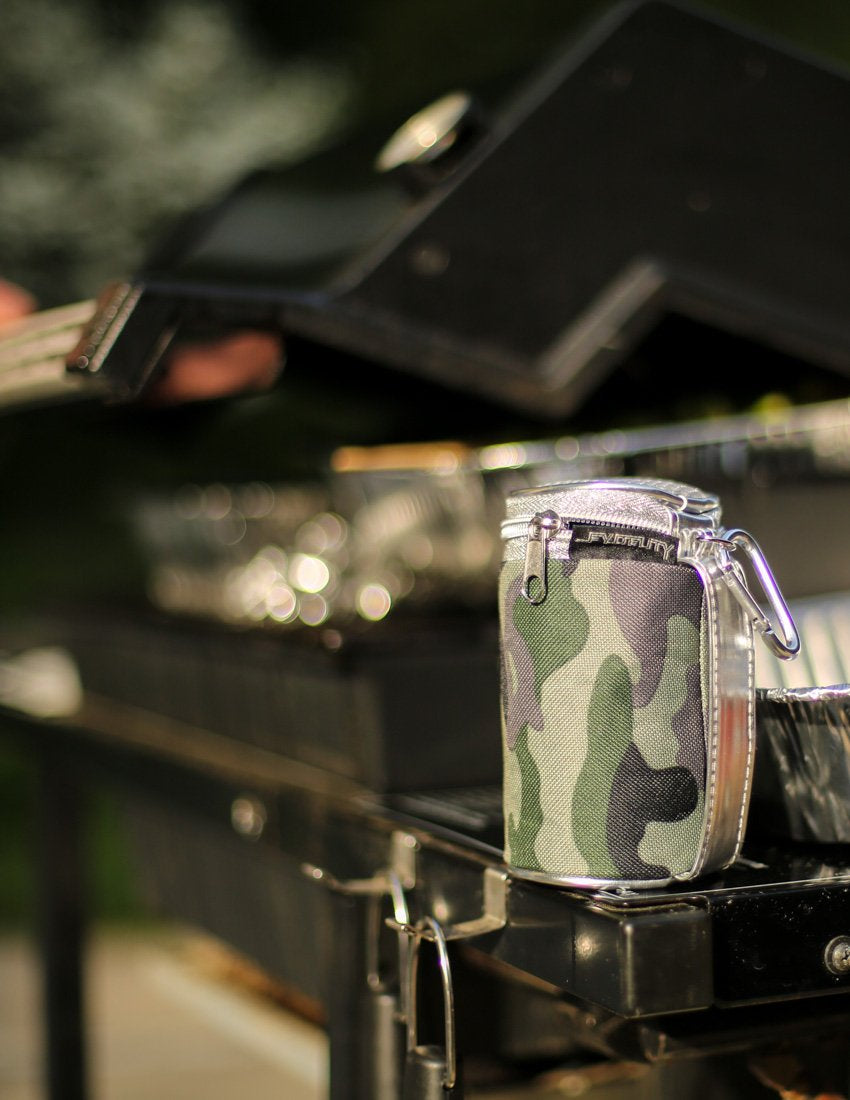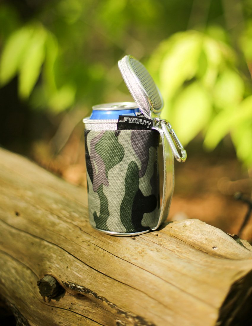 FYDELITY's koolzie fits one can in it's insulated lining and includes a strapped handle for comfort. A zipper seals in your cold one until you're ready, and a carabiner clip is included to latch to another bag of your choosing. The vibrant full-color designs are printed with a 4 color CMYK heat sublimation process so the colors will not fade.