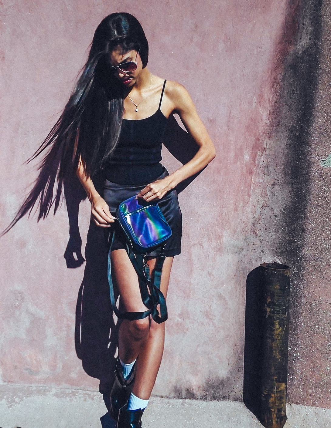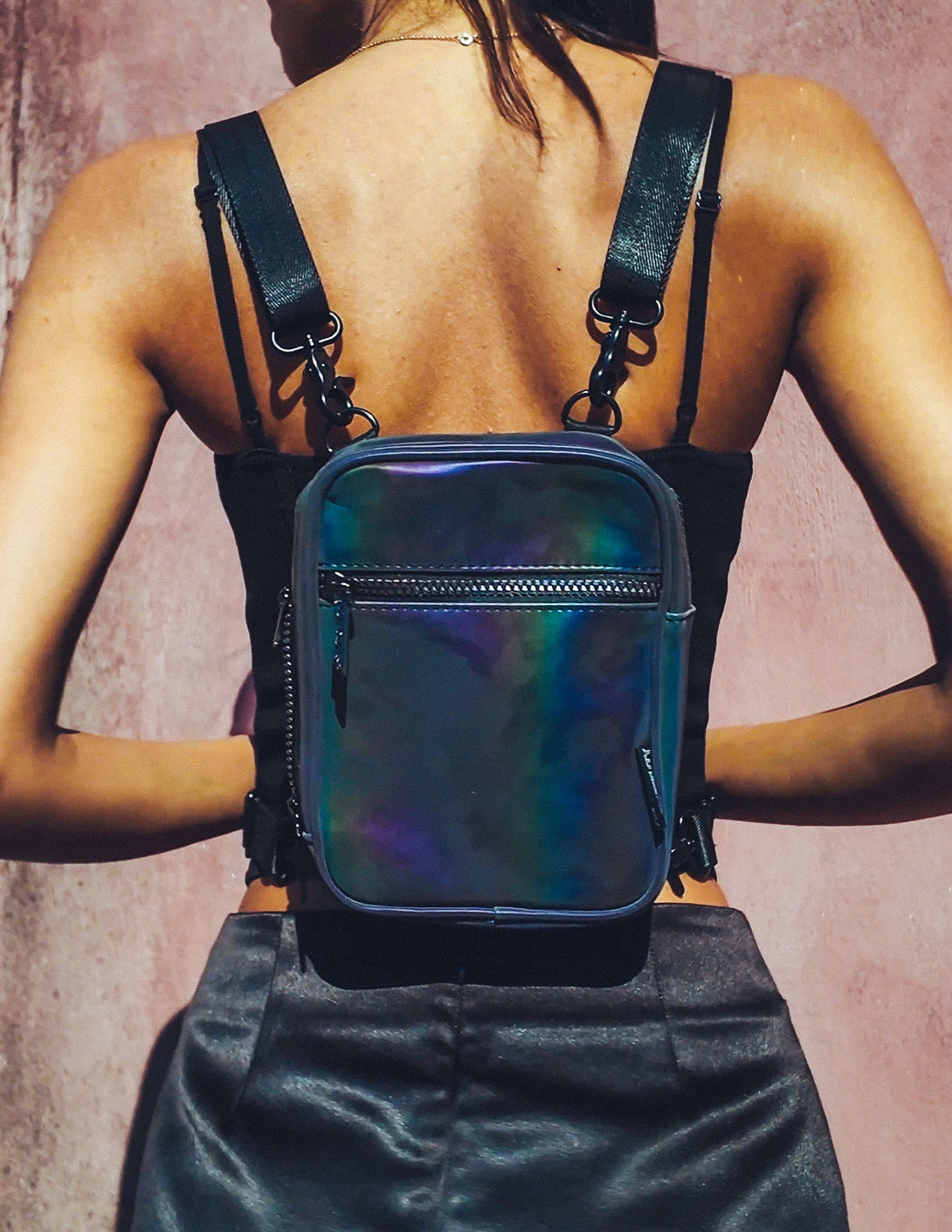 Stealth or standout? You choose. The Silver Reflective version shifts between sleek, urban grey by day and high-visibility silver under lights—keeping you low-key until it’s time to shine. Meanwhile, the Rainbow Reflective version is all about prismatic power, bouncing back a spectrum of color when the light hits just right. Whether you’re turning heads in the city, catching flashes at a festival, or flexing under neon lights, this bag reflects your energy—literally.