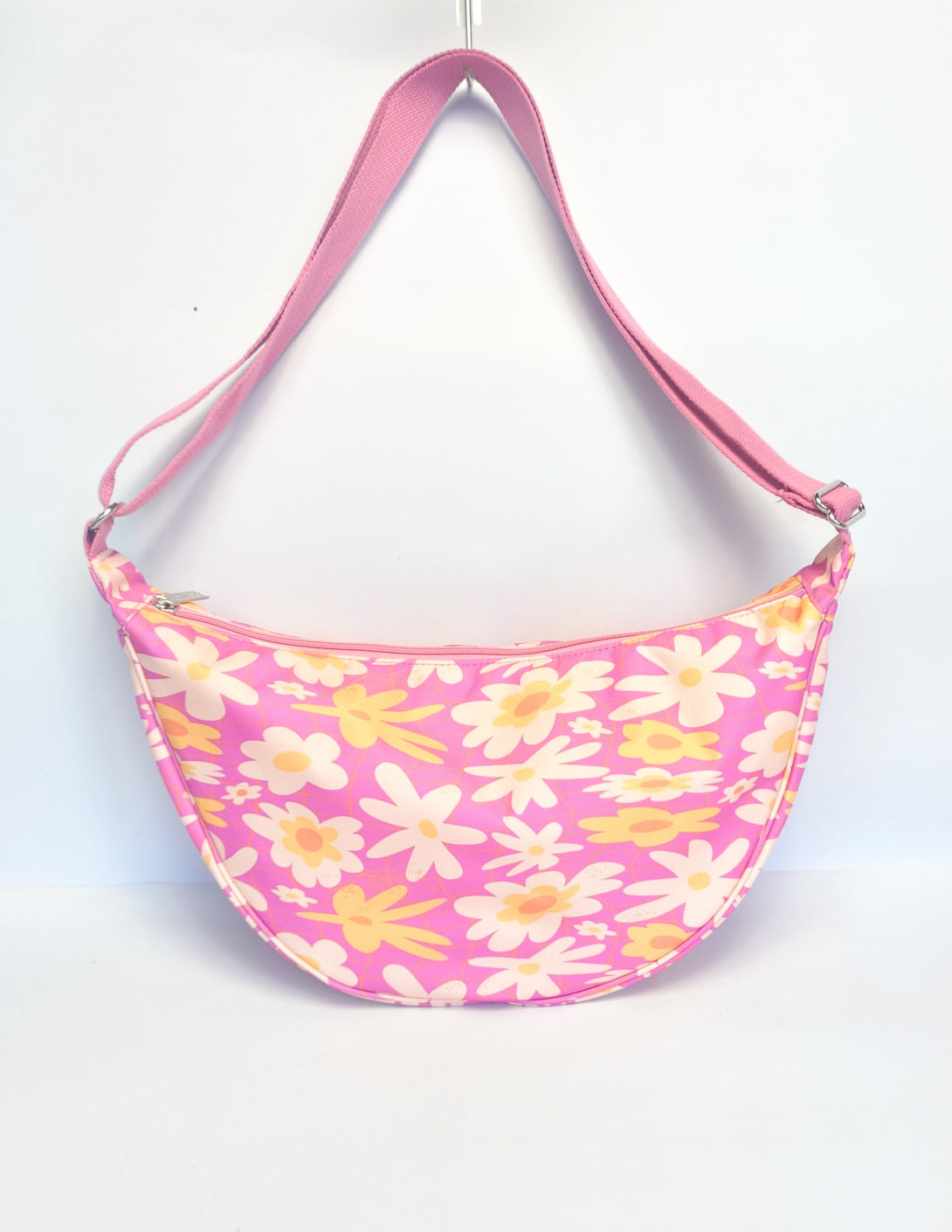 Eco-Funky Design: Shaped like the crescent moon, this crossbody bag isn't just a statement; it's a conversation starter. Crafted from recycled rPET materials, every piece tells a story of transformation, from 100% post-consumer sources to your unique accessory.