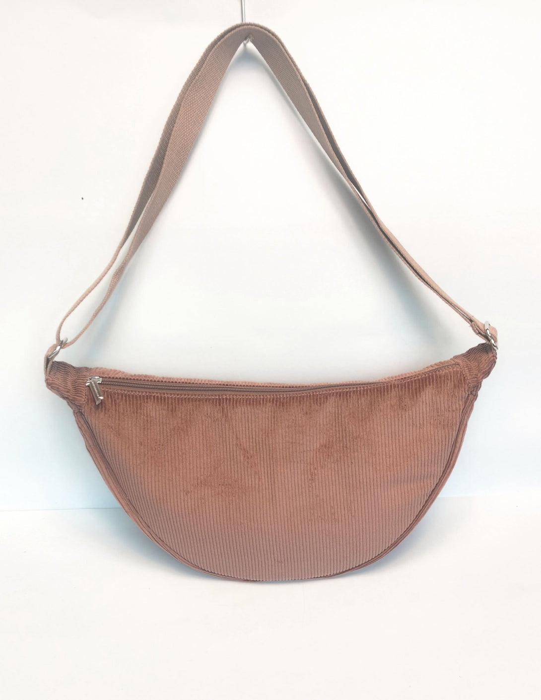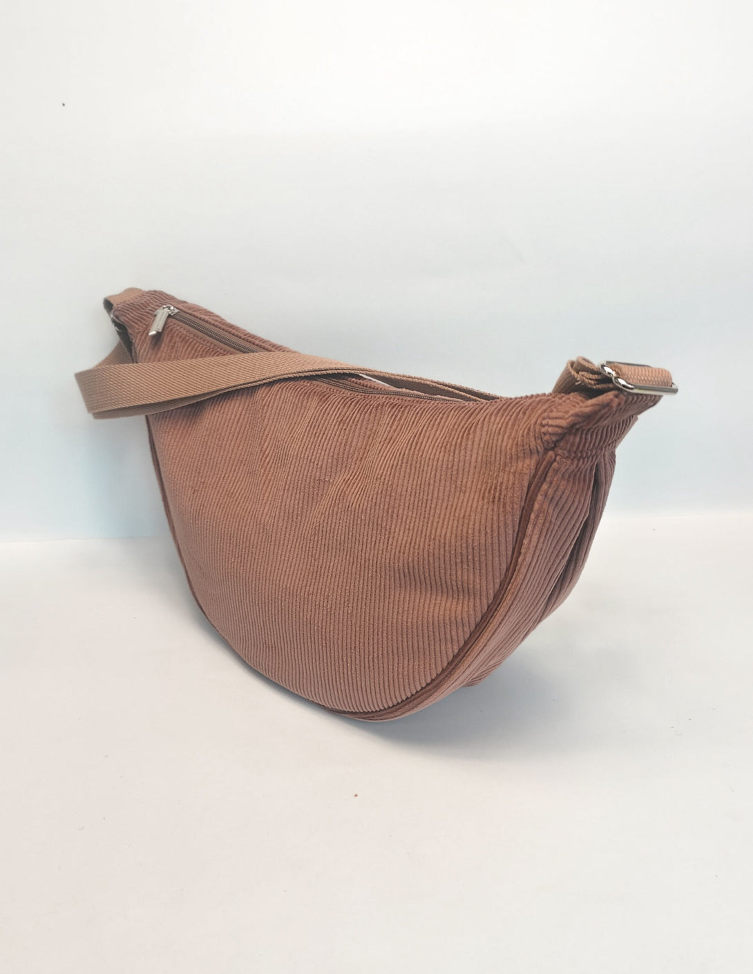 Funky Design: Shaped like the crescent moon, this crossbody bag isn't just a statement; it's a conversation starter. Crafted from durable corduroy materials, every piece tells a story of transformation, from fly-by-night to catwalk heights.