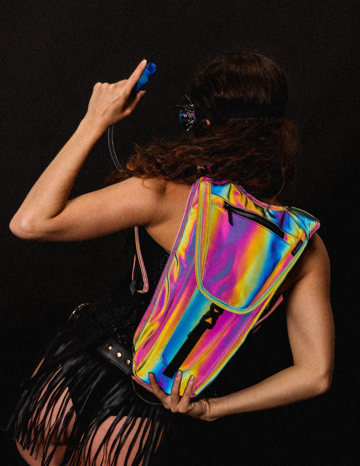 Hydration Backpack | Reflective Anti-Theft Holographic Insulated | Rainbow Purple