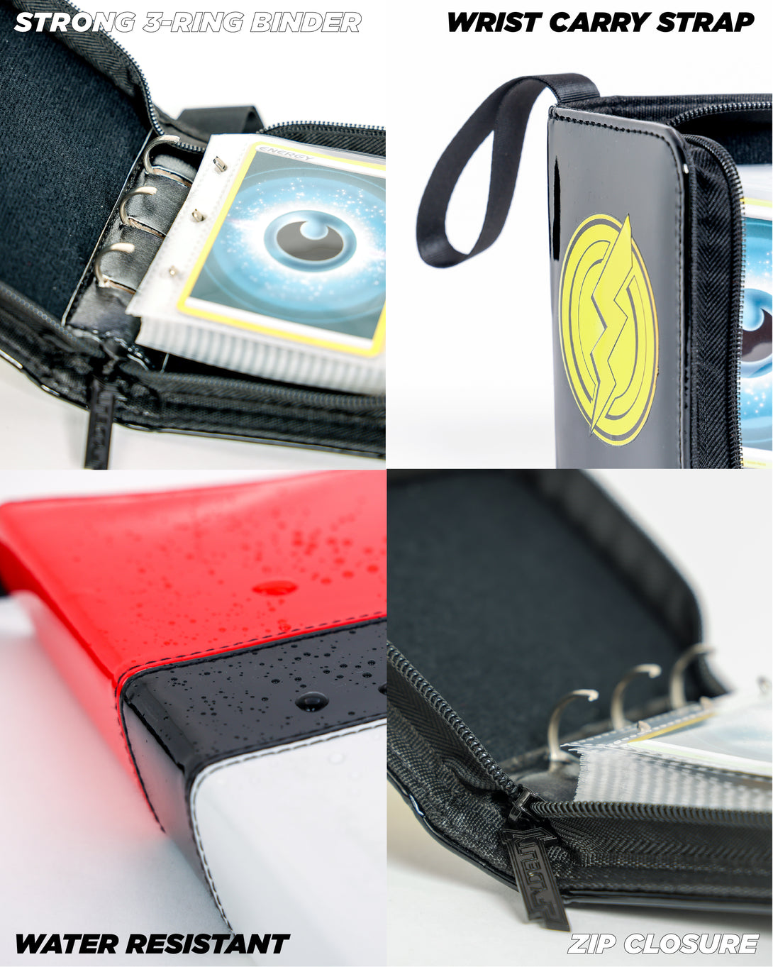 DESIGNED FOR CONVENIENCE & DURABILITY: Our organizer is an easy-to-transport album binder that features a full zipper enclosure & a convenient hand-carry strap. The cover material is water-resistant, ensuring your cards stay safe from spills. We use a strong 3-ring clasp for easily adding & removing pages. Great for taking to any match or trading event/deal