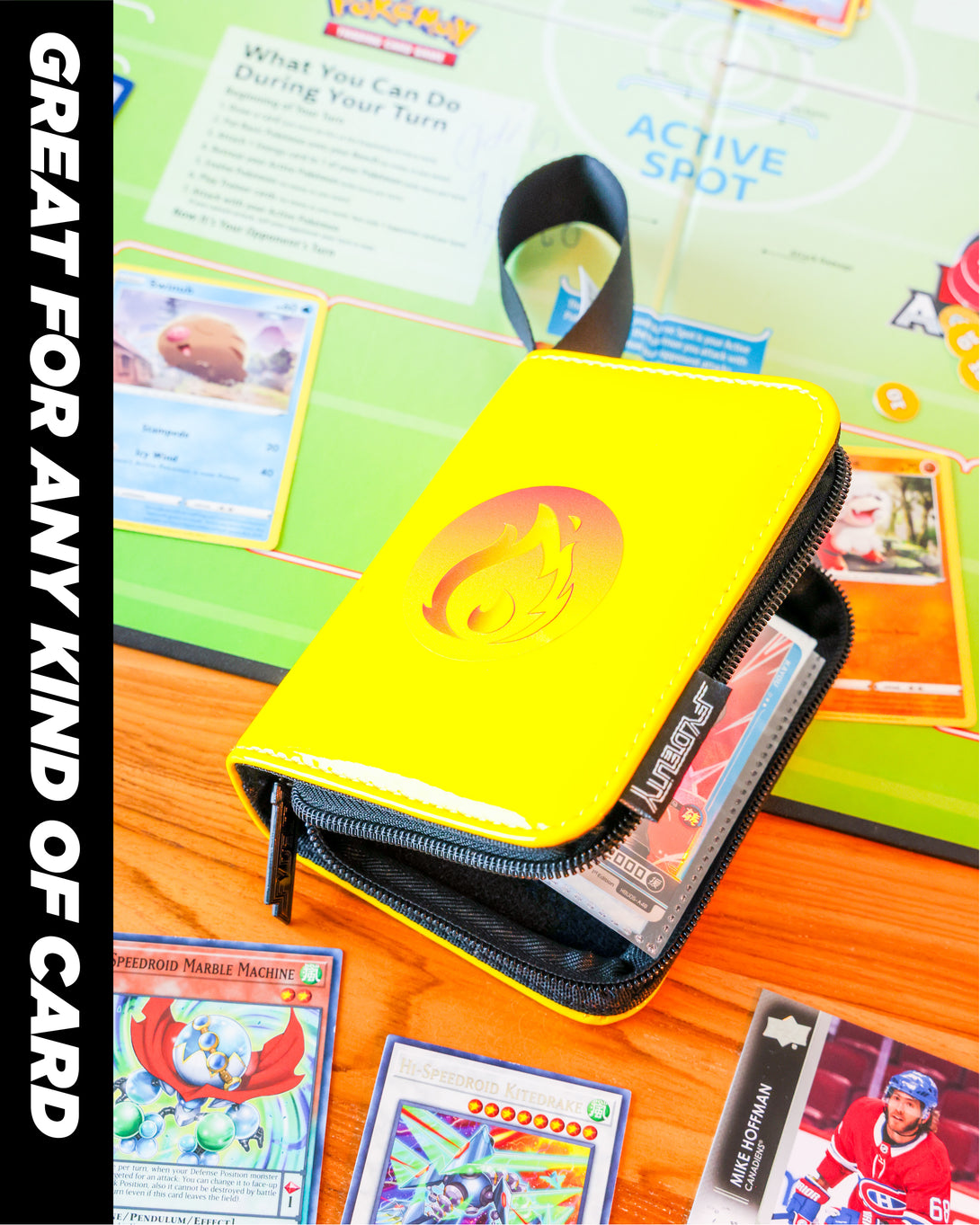 DESIGNED FOR CONVENIENCE & DURABILITY: Our organizer is an easy-to-transport album binder that features a full zipper enclosure & a convenient hand-carry strap. The cover material is water-resistant, ensuring your cards stay safe from spills. We use a strong 3-ring clasp for easily adding & removing pages. Great for taking to any match or trading event/deal