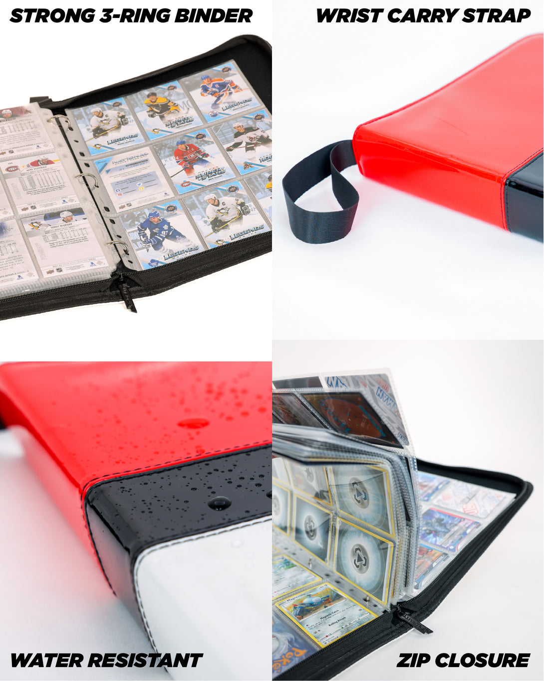 DESIGNED FOR CONVENIENCE & DURABILITY: Our organizer is an easy-to-transport album binder that features a full zipper enclosure & a convenient hand-carry strap. The cover material is water-resistant, ensuring your cards stay safe from spills. We use a strong 3-ring clasp for easily adding & removing pages. Great for taking to any match or trading event/deal